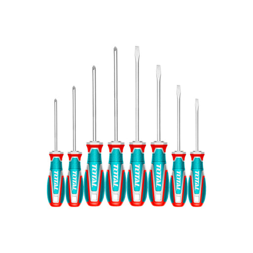 Set 8 Destonrliladores S2SKU: TKSDS0846 El set Total incluye 8 destornilladores fabricados con puntas de acero S2, ofreciendo mayor resistencia y d...